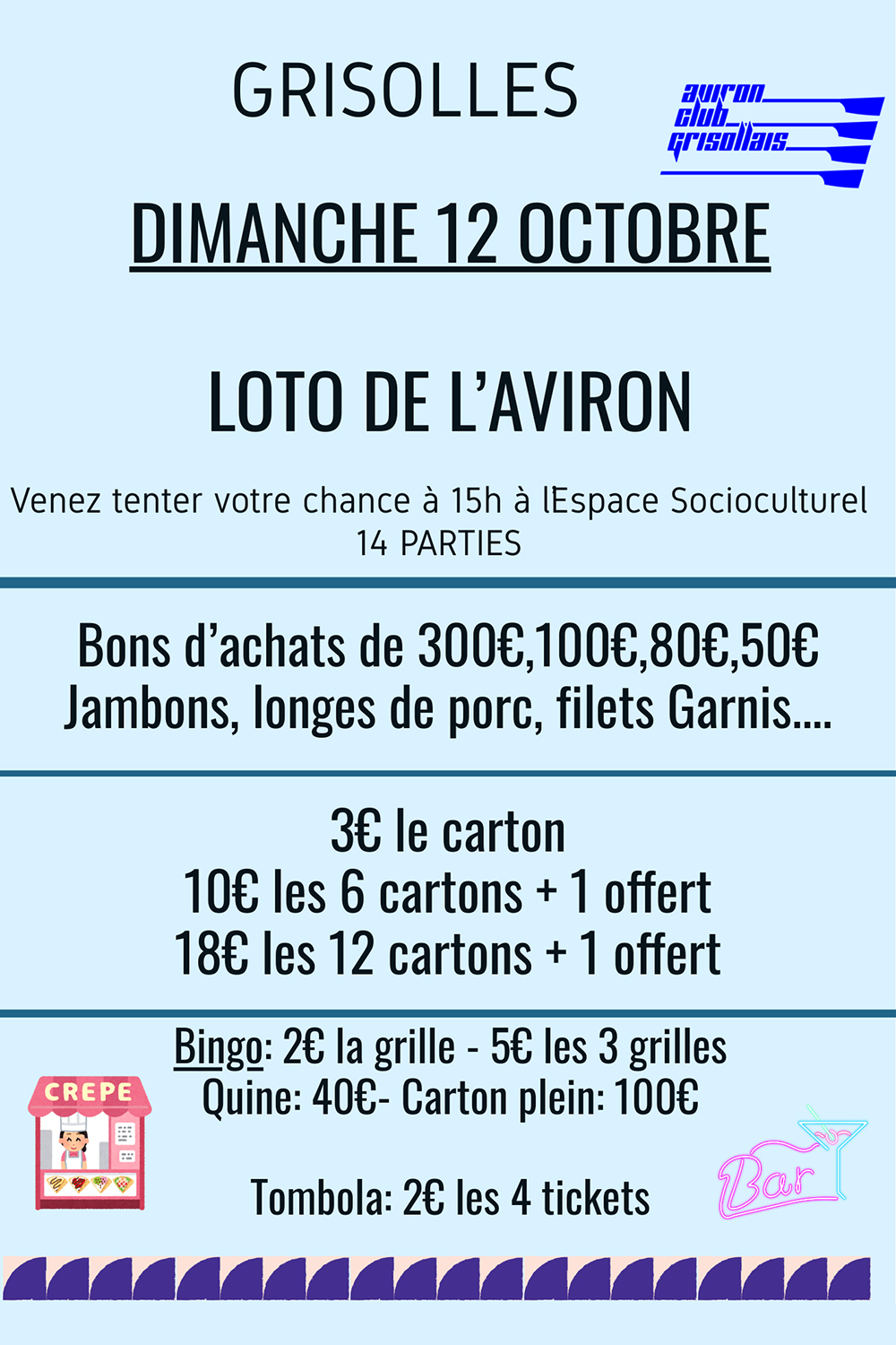 Le 12 Octobre à partir de 15h à l'espace socioculturel de Grisolles.