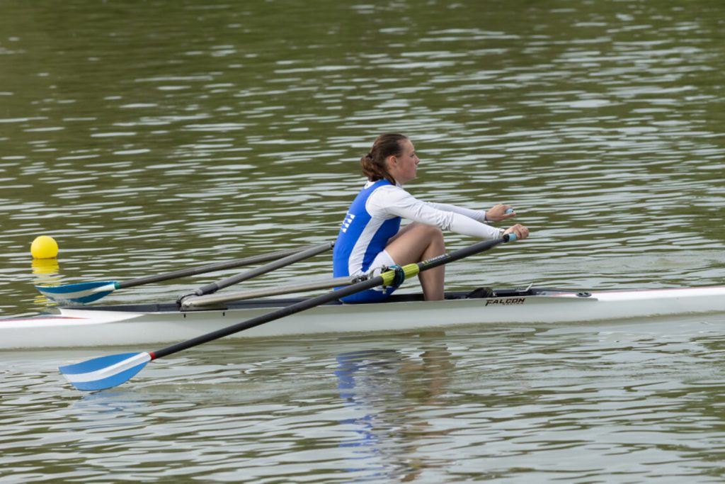 La phase de propulsion se termine avec le dégagé (ou position dite "sur l'arrière") qui consiste à extraire la pelle de l'eau.